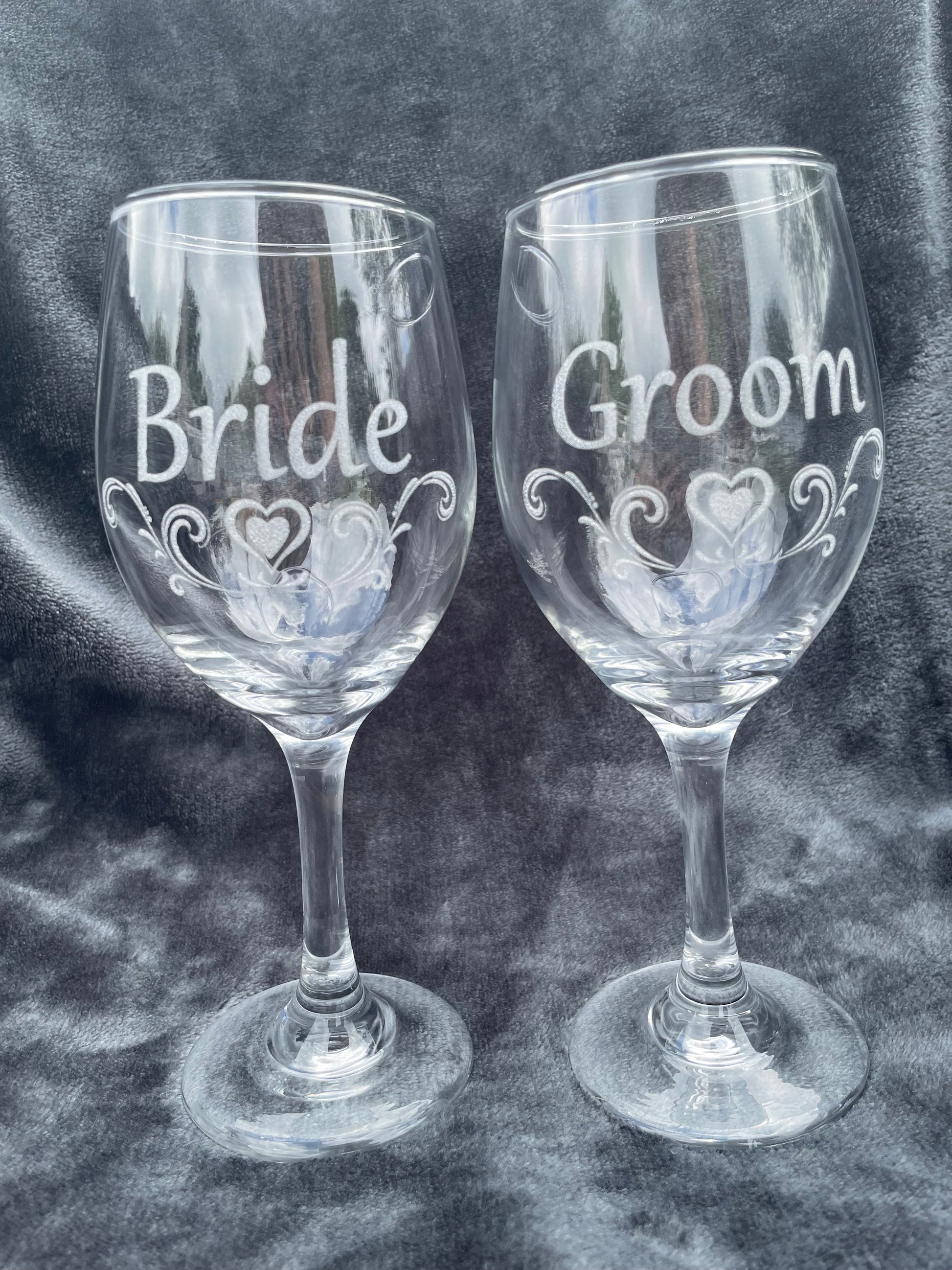 laser engraved wine glasses for weddings and special events. custom glasses are available just message our team!