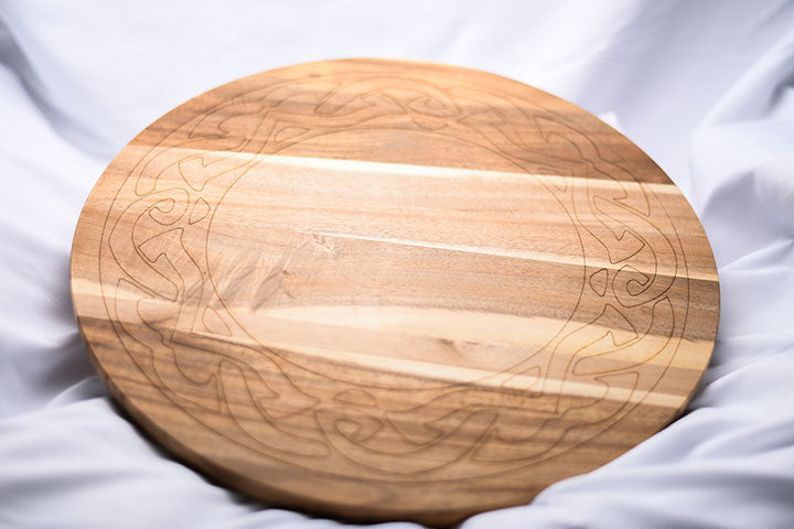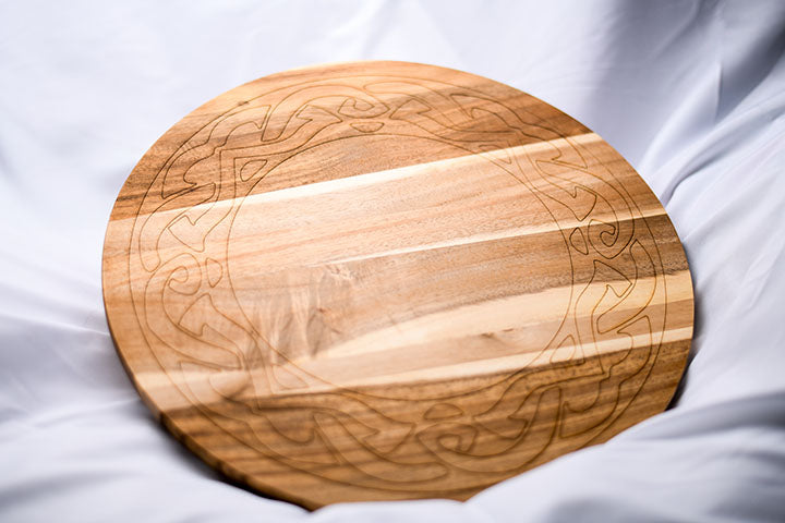 15" Hard wood Lazy Susan with Celtic ring engraving. food safe.